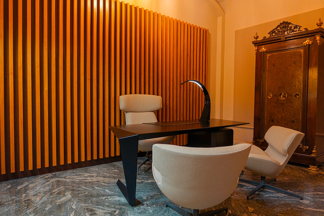 La gioielleria è divisa in due zone; un’ampia area espositiva ed un salotto accoglieranno il  visitatore. Il cliente che desidera riservatezza potrà accedere ad una seconda area, accolto da  un’ampia zona vendita e comode poltrone, circondato da storiche ed imponenti cassaforti. Il servizio bar completerà l’esperienza all’interno del punto vendita.